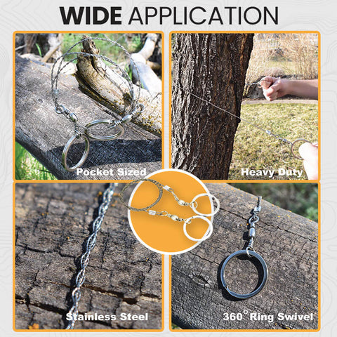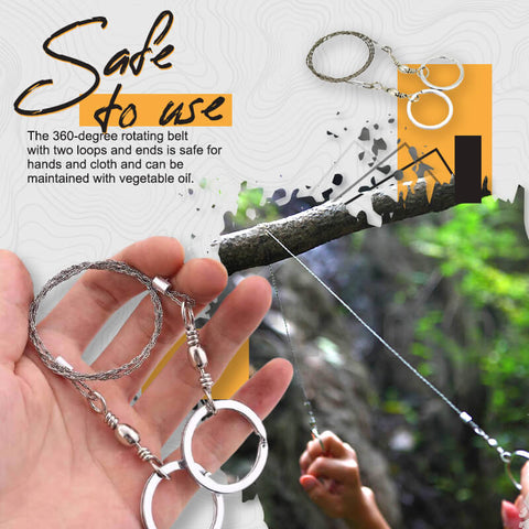 ► HIGH-QUALITY MATERIALSMade of superior 4 Strands stainless steel wire rope winding which has strong tensile strength. It is good strength hardness and elasticity, which is a portable survival chainsaw.